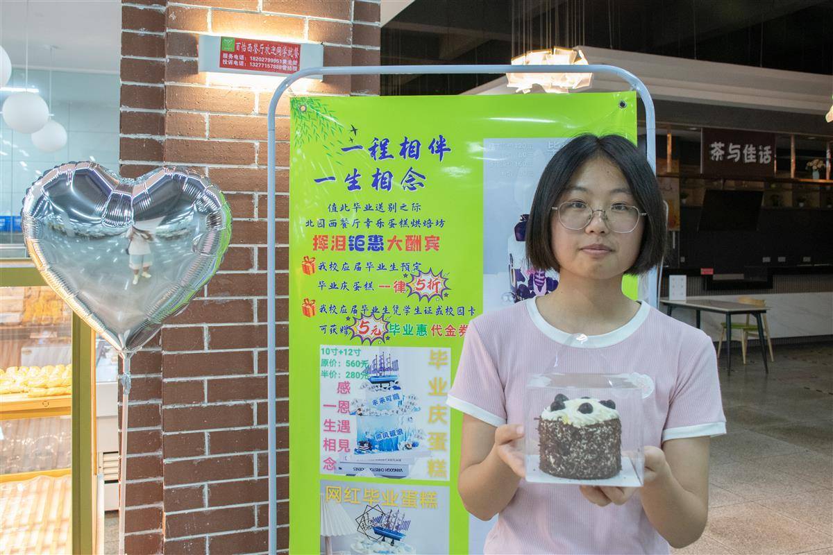 活动期间,该校黄家湖校区北园食堂二楼串串烤肉窗口全场半价,应届毕业生(含研究生)可享受生日蛋糕半价优惠,还可凭学生卡到烘焙窗口领取5元代金券。烘焙窗口的工作人员介绍,活动开始第一天就有近百名学生来定做蛋糕。