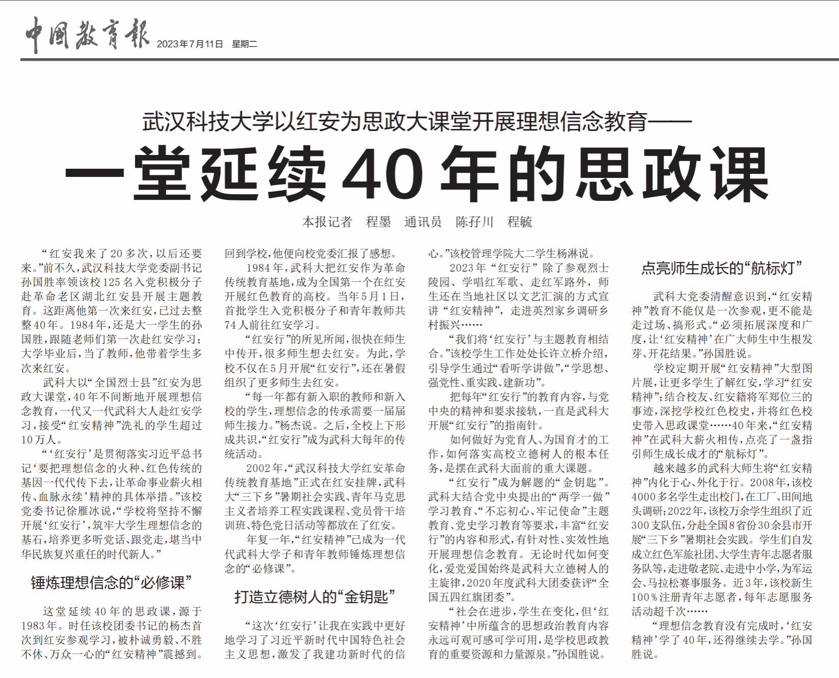 本报记者 程墨 通讯员 陈孖川 程毓 《中国教育报》2023年7月11日3版