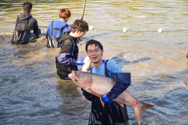 荆楚网:人可以摔,鱼不能丢!武科大学子捕鱼为母校125周年庆生