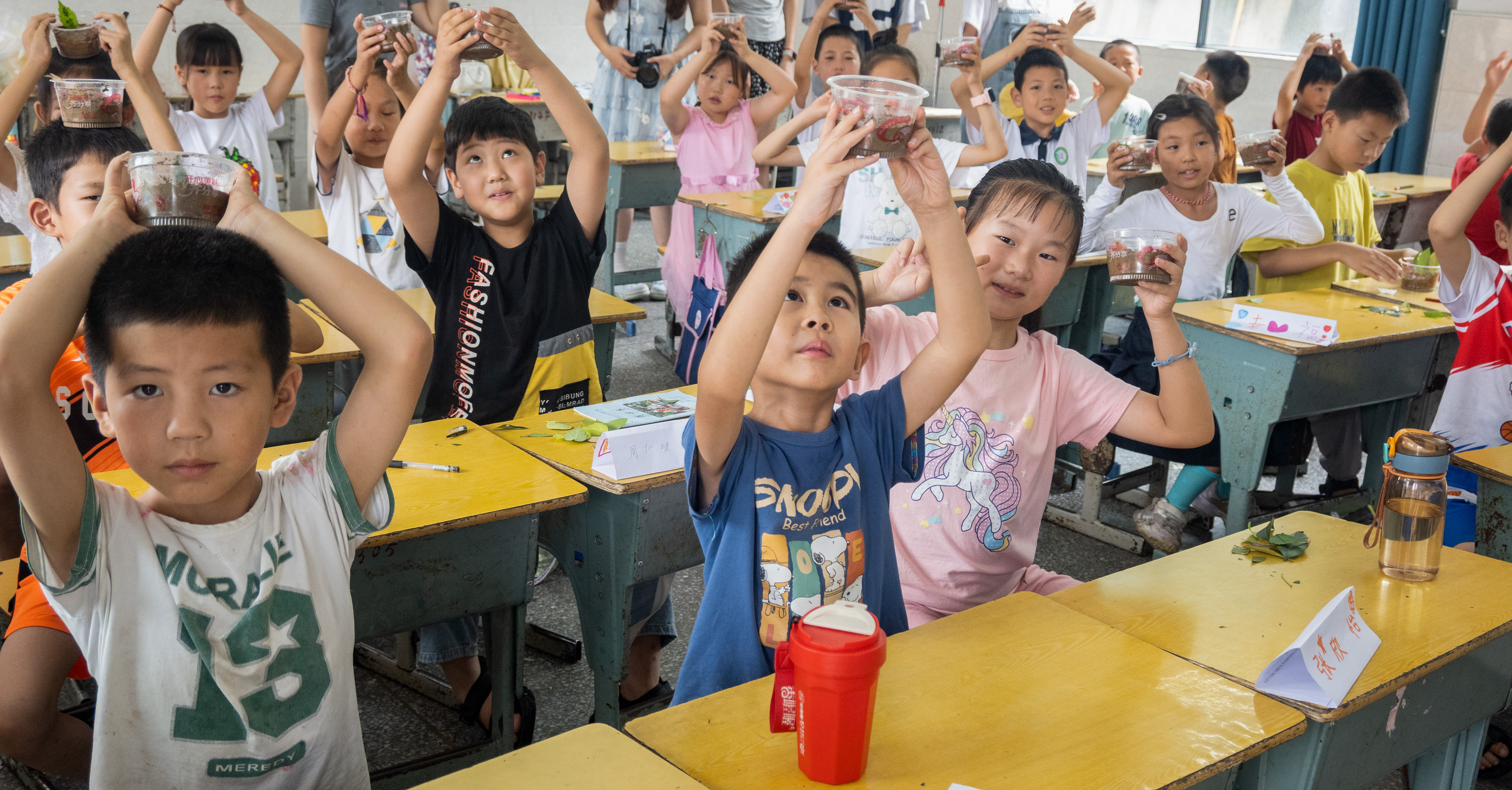 学生方传路用手刨土、装土,在土壤中间挖了一个小洞。“洞的大小需要让两根手指同时放得进去。”华中农业大学实践队员饶祖儿帮助方传路将小洞挖深,带领他将两粒黄瓜种子放入其中,刨土将洞盖实,然后接水、取水、浇水,浸透一半土壤。方传路还积极提问:“为什么我爷爷种黄瓜时会架一个高高的架子?”饶祖儿耐心解答说:“黄瓜是一种爬蔓植物,这样做有利于提高产量。”播种完成后,方传路打算把土壤带回家,和爷爷一起种出黄瓜。