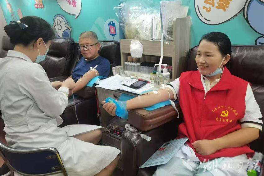 “这次是我第三次献血,每次收到短信提醒自己的血液又帮助了一个人,浑身都充满了自豪感。”第五党支部书记、消化内科主任黄招兰说,献血是一件力所能及的小事,希望通过自身的正能量影响带动支部更多党员、科室普通员工,用责任和担当诠释医者仁心。