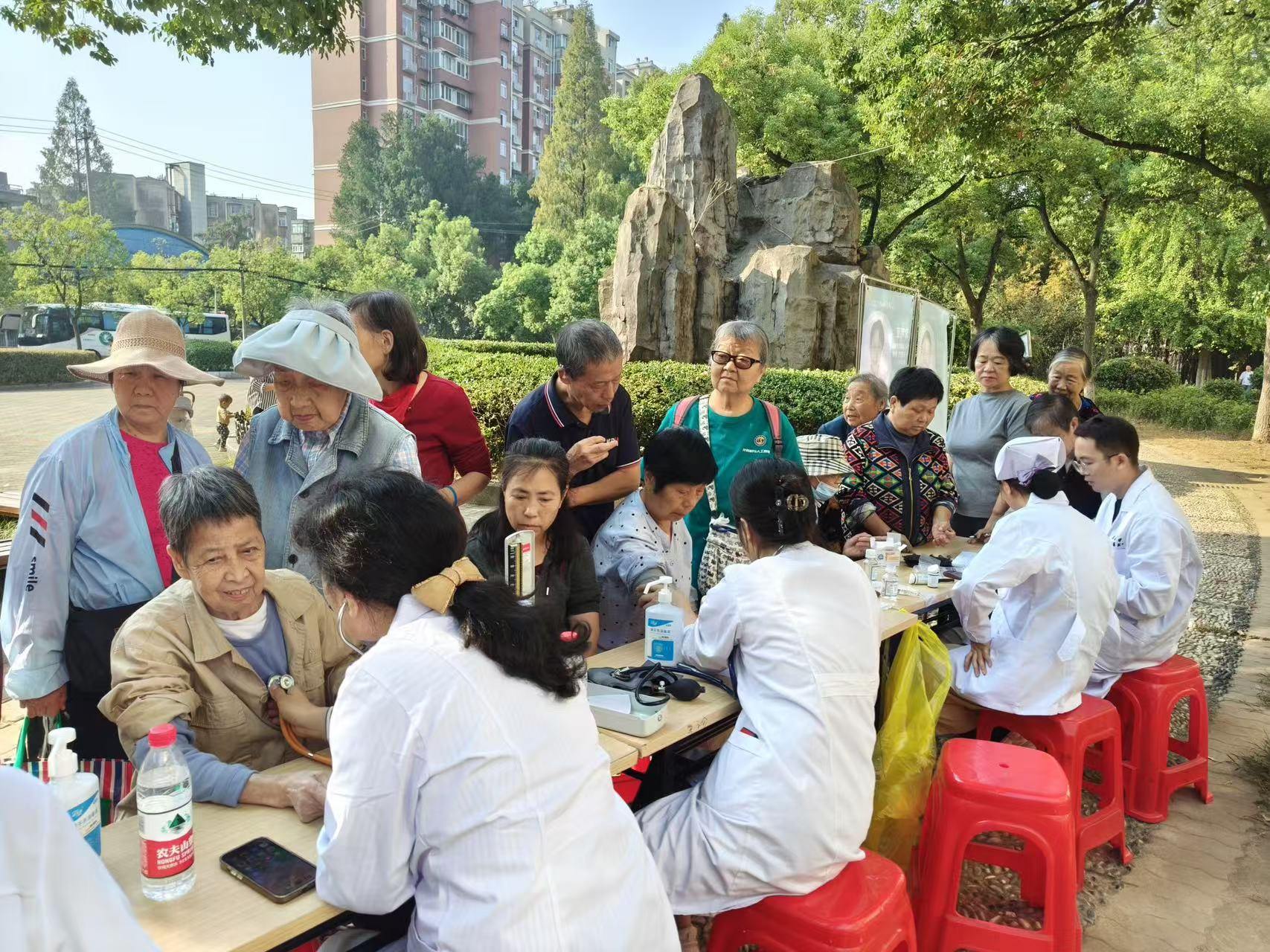此外,医护人员还为现场教师及过往师生发放了健康宣传手册和精美的小礼品,活动现场,气氛温馨,老人们的脸上洋溢着感激与幸福的笑容。
