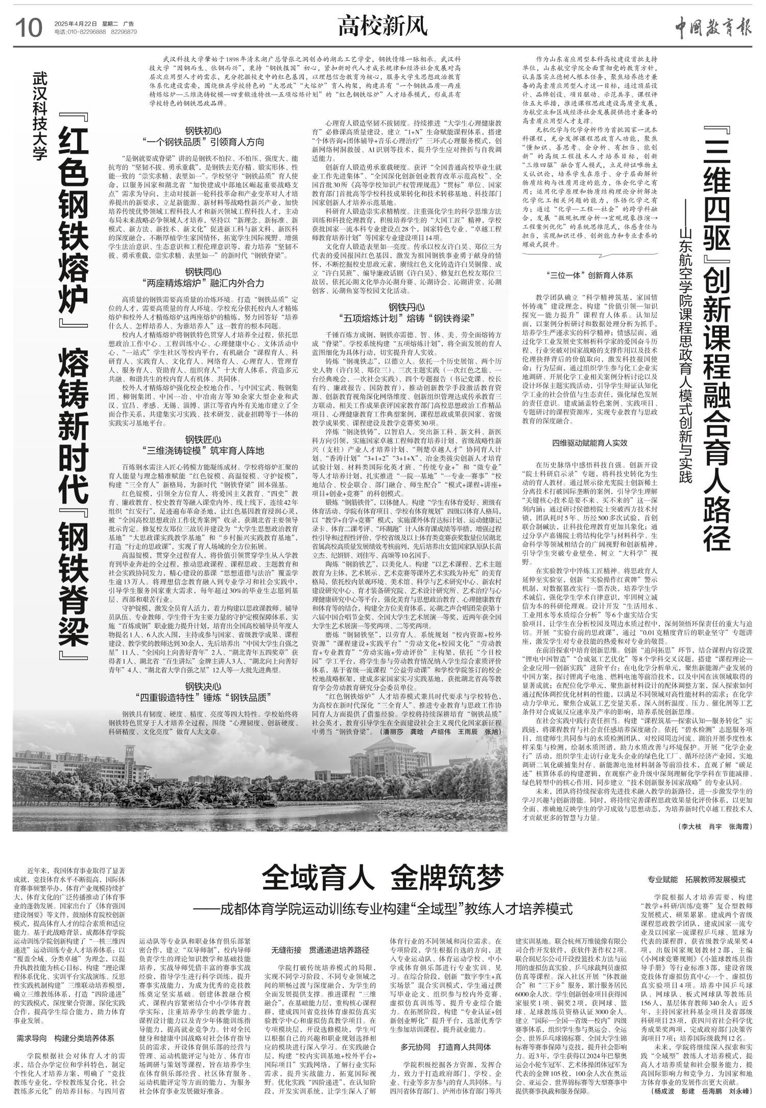 “红色钢铁熔炉”人才培养模式兼具时代要求与学校特色,为高校在新时代深化“三全育人”、推进专业教育与思政工作协同育人方面提供了借鉴经验。学校将持续深耕培育“钢铁品质”社会英才,教育引导学生在全面建设社会主义现代化国家新征程中勇当“钢铁脊梁”。(潘丽莎 龚晗 卢绍伟 王雨辰 张旭)
