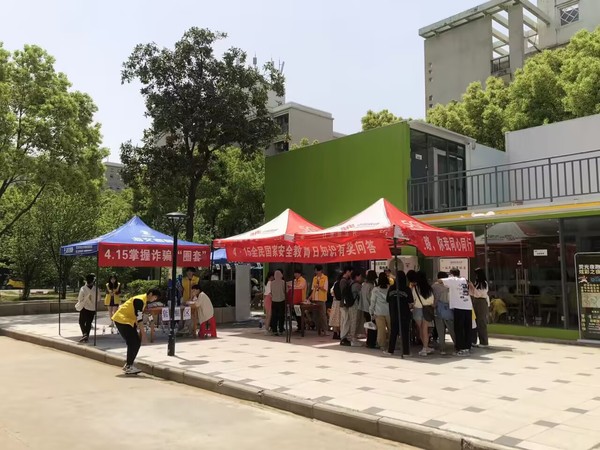 4月15日,学生安全自治委员会的志愿者们在保卫处老师的指导下,于我校学生社区安全教育工作站开展了国家安全教育系列活动。知识问答、视频展播、主题海报展板展示等内容,吸引了大批师生驻足学习。安委会成员及志愿者还在南园一站式服务中心摆放帐篷,设置套圈区、答题区、兑奖区三个区域,让参与学生在赢取丰厚奖品的同时了解国家安全及反诈知识。