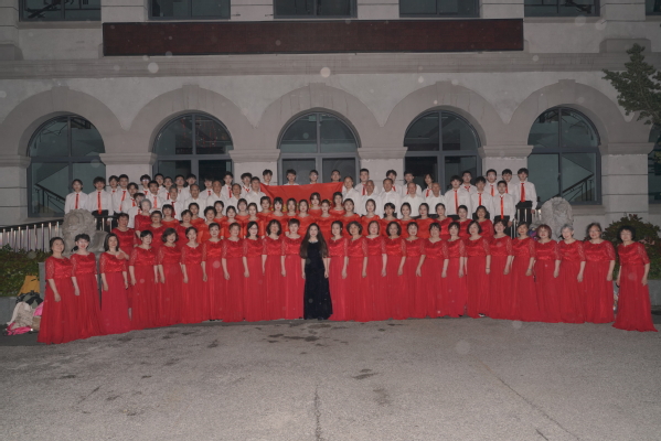 上场之前,90余名师生在指挥姜瑾的带领下进行开嗓练习,我校老年团的老师和沁湖之声合唱团的学生成员们用哼鸣的方式建立腔体的共鸣。在此前长达一个多月的多次共同训练的基础上,老教授和学生们的声音达到了高度的和谐。