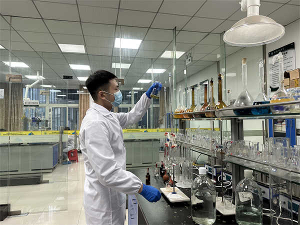 有没有一种方法既能解决管道堵塞又能解决化学试剂浪费的问题呢?张若冰和同门讨论后,带着疑惑去查阅资料,进行实验推算,最后和带队老师一起找出了可循环的调节方法。“不仅要在实验室的电脑前去工作,更要用于实际运用,把论文写在大地上。我们研究的理论终究是要用于实际生产中,我很乐意做好技术服务。”张若冰如是说。