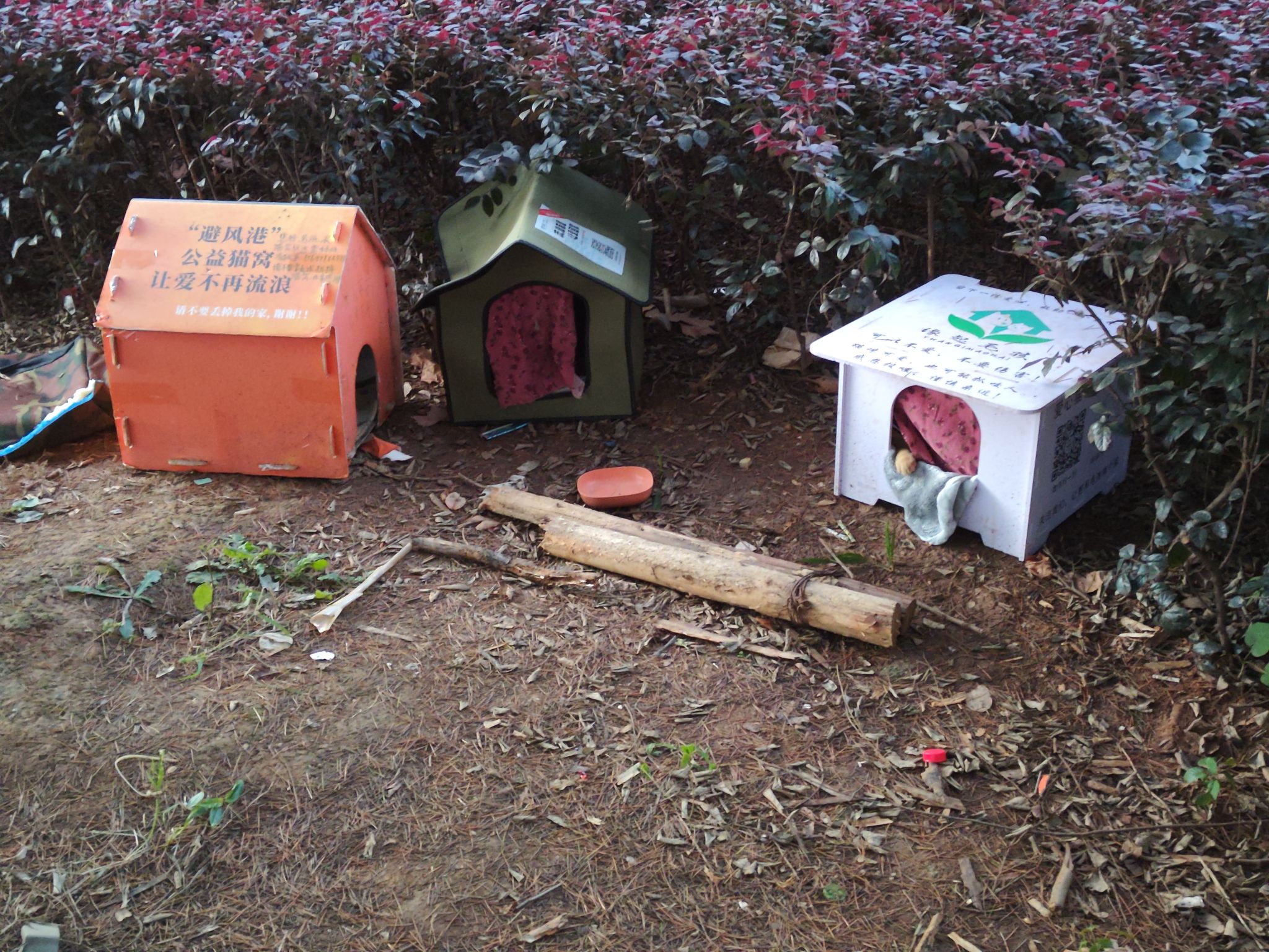 武科大网讯(见习记者宋钦 通讯员王翔宇 摄影宋钦)“我们一般在快降温的时候就开始申请和制作猫窝了,冬天太冷了,大部分流浪猫没有猫窝又在户外会很难熬过去的。”猫窝搭建项目负责人李一涵(化名)跟来喂养猫咪的学生简单介绍了猫窝的重要性。步入十一月后,我校角落里出现了许多“新居”。它们通常是一个规则纸箱,里面铺上了暖和的旧衣物,纸箱外部有手绘的图案和装饰品,这就是我校学生们自发建造的猫窝。