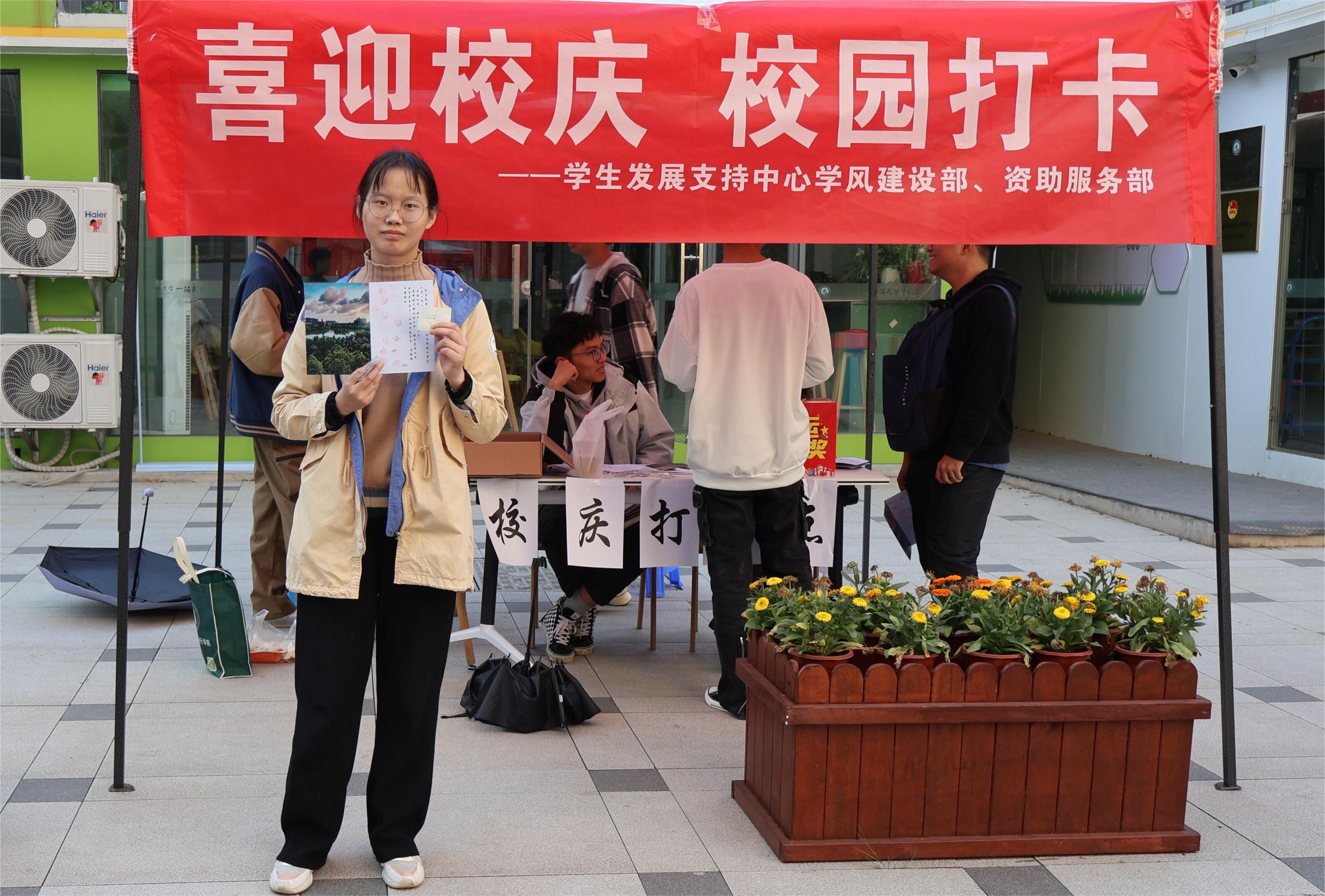 武科大网讯(通讯员李周阳 见习记者邹逸凡 摄影李周阳)“君问归期未有期,巴山夜雨涨秋池……”一阵阵背诵诗歌的声音从北园一站式学生社区传来。11月19日,我校举办迎校庆校园打卡活动。该活动以集邮的形式呈现,学生前往我校标志性建筑与地点等15个打卡点完成指定任务,领取学校125周年校庆文创产品。