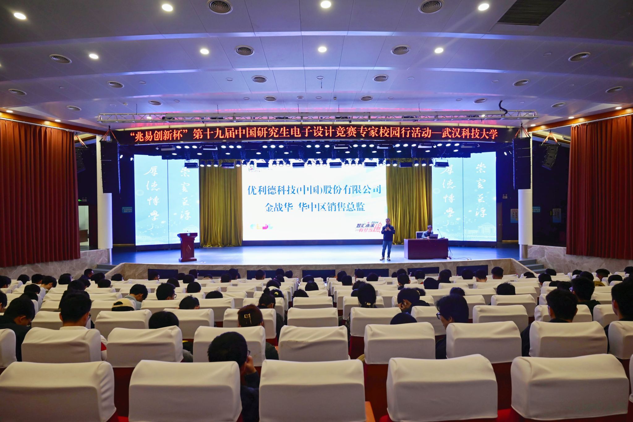 优利德科技(中国)股份有限公司华中区销售总监金战华解析企业命题内容。在陈少昌介绍的基础上,金战华向众人解释,企业命题的难度适中,获奖概率较为可观,并邀请有意愿参与赛事的团队说:“如果对‘产学研’的企业命题有所兴趣的话,可以直接与我们公司展开合作。”同时,他还向学生重点介绍了包括应用型智能数字示波器在内的公司特色产品,并以此为依据介绍了行业发展前景。