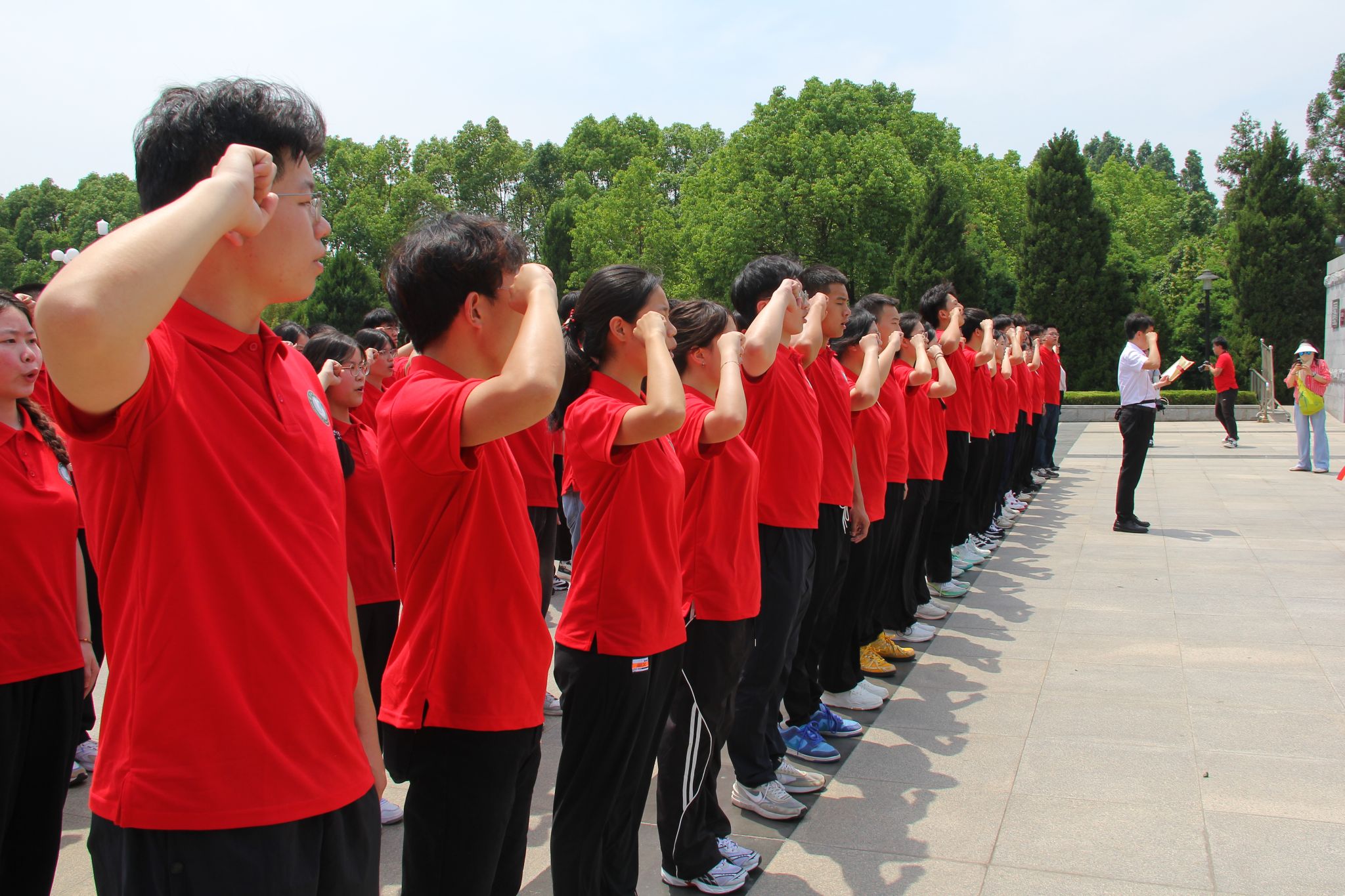 黄麻起义和鄂豫皖苏区纪念园里,全体师生在庄严肃穆的纪念碑前敬献花篮,向革命先烈三鞠躬。面向党旗,郑永松带领师生庄严宣誓:“我们要坚定理想信念, 继承革命意志,弘扬红安精神, 传承钢铁品质,坚定不移听党话、跟党走,为实现中华民族伟大复兴而奋斗。”